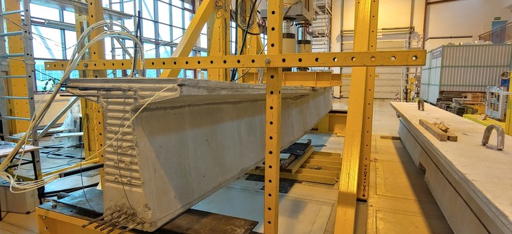 W październiku br. w laboratorium prowadzono badania dźwigarów strunobetonowych w ramach grantu „System monitorowania i diagnostyki konstrukcji sprężonych za pomocą wbudowanych czujników światłowodowych”. Grant jest finansowany przez Podkarpackie Centrum Innowacji.