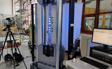 W kwietniu i maju 2023 w laboratorium prowadzono badania nośności i sztywności złączy elementów drewnianych