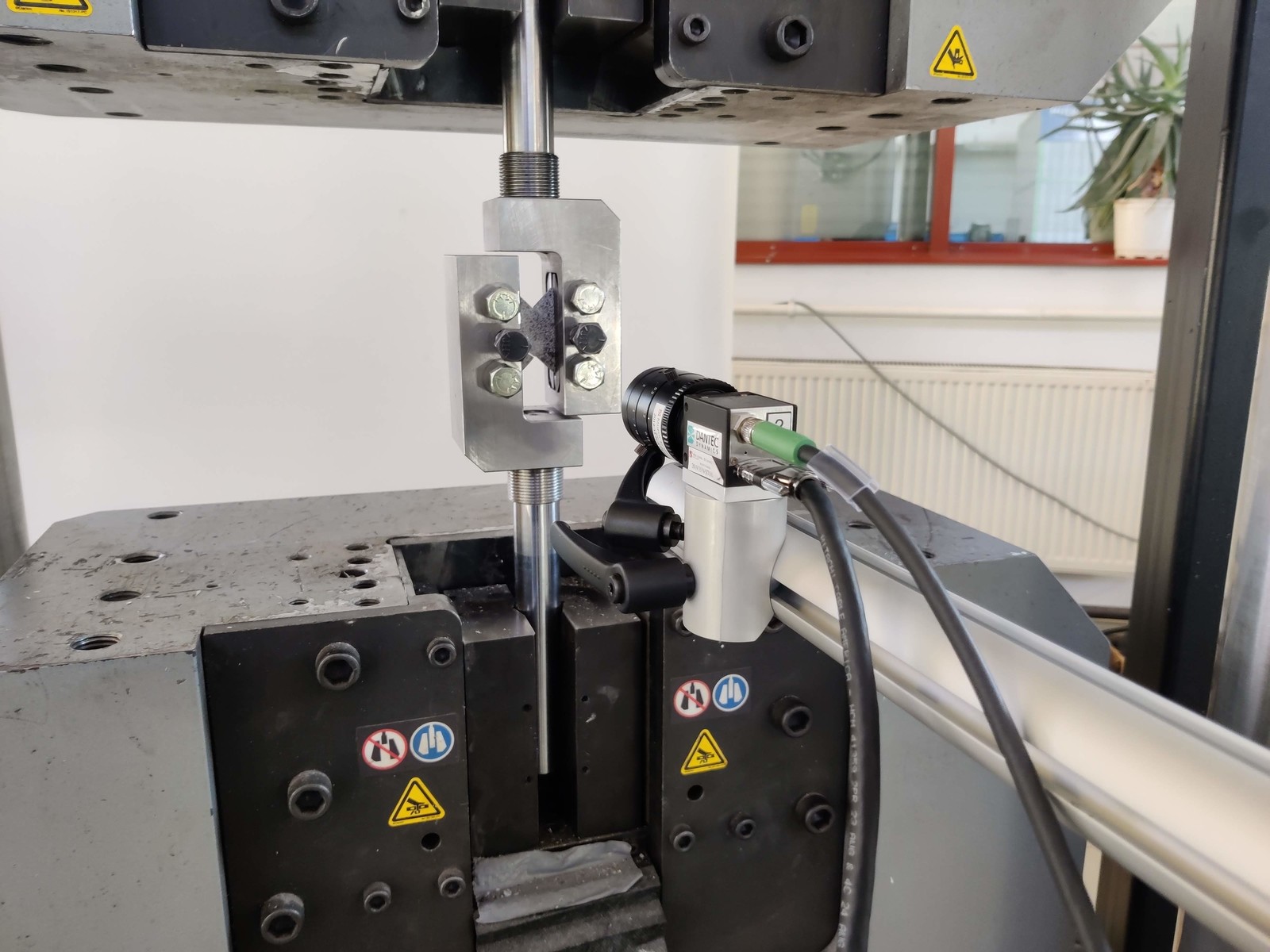 Przeprowadzono badania na maszynie wytrzymałościowej Instron z wykorzystaniem systemów Katedry Mechaniki Konstrukcji Q400/Q450 DANTEC DYNAMICS, przeznaczonych do pomiarów statycznych/wolnozmiennych i szybkozmiennych.